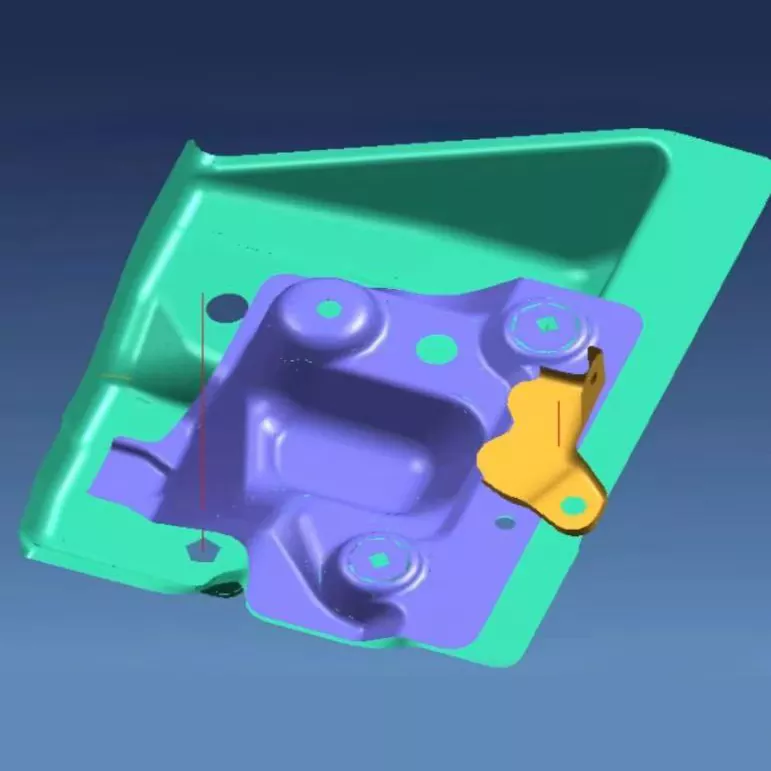 Automotive Small Bracket Stamping Dies menggunakan perisian reka bentuk 3D penuh seperti UG dan CATIA untuk menapis rongga, sistem panduan dan komponen lain, memastikan struktur acuan yang rasional dan kemudahan penyelenggaraan.